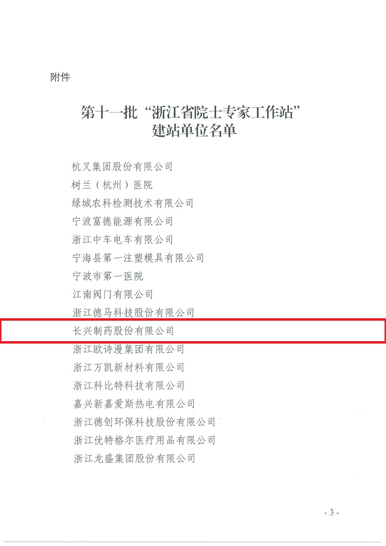 長(zhǎng)興制藥股份有限公司院士專家工作站成立于2017年3月,聘請(qǐng)中科院吳養(yǎng)潔院士為建站院士,2019年3月邀請(qǐng)中科院趙國(guó)屏院士加盟院士專家工作站,進(jìn)一步提升工作站的研發(fā)實(shí)力。2019年8月被認(rèn)定為第十一批省級(jí)院士專家工作站。
